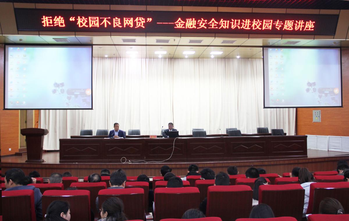 为教育引导广大学生认清校园不良网贷的危害,增强金融风险防范意识和金融安全意识,提升自我保护能力,11月7日下午,学生工作处邀请中国建设银行许昌分行个人金融服务部副经理赵建奇,在我校学术报告厅举行拒绝“校园不良网贷”金融安全知识进校园专题讲座,各学院主管学生工作的领导、全体专兼职辅导员老师及2018级学生代表三百余人参加活动,活动由学生工作处副处长周银超主持。